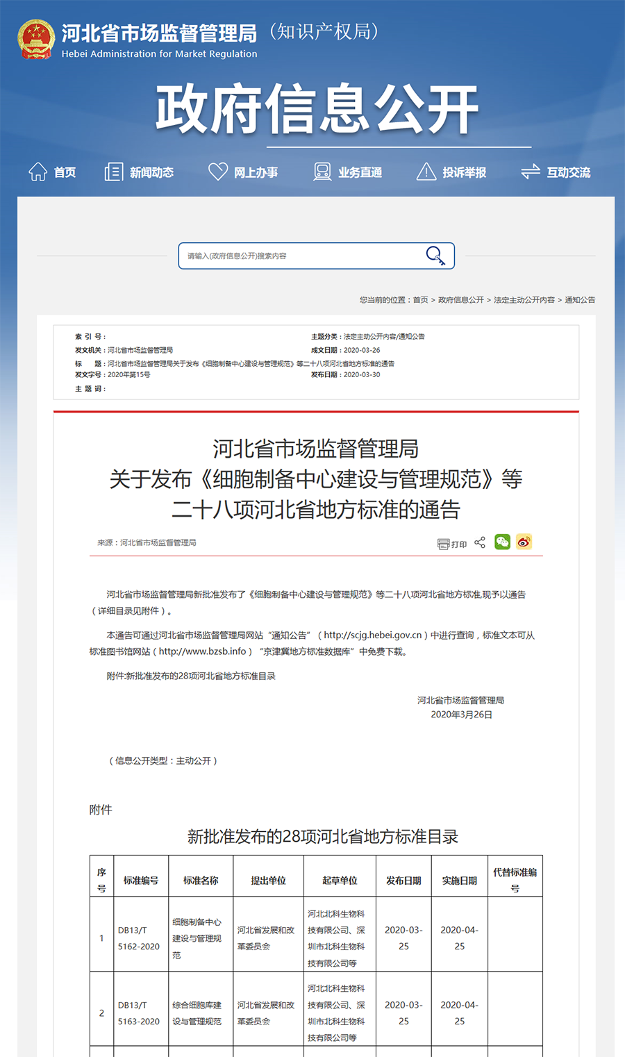 3月25日,河北省市場監(jiān)督管理局發(fā)布通知,《細胞制備中心建設(shè)與管理規(guī)范》(編號:DB13/T5162-2020)、《綜合細胞庫建設(shè)與管理規(guī)范》(編號:DB13/T5163-2020)正式批準(zhǔn)發(fā)布,將于4月25日正式實施。兩項標(biāo)準(zhǔn)是河北省標(biāo)準(zhǔn)化體系建設(shè)的重要組成部分之一,由河北省市場監(jiān)督管理局組織,河北省發(fā)展和改革委員會提出,河北北科生物科技有限公司,深圳市北科生物科技有限公司、個體化細胞治療技術(shù)國家地方聯(lián)合工程實驗室(深圳)共同編制完成。