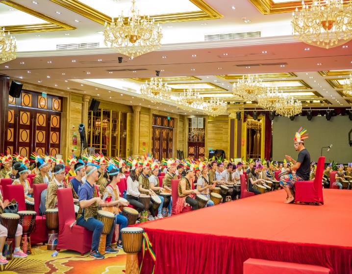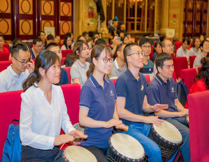 初始,在無(wú)言的敲打演奏中,每位北科人皆特立獨(dú)行,樂(lè)章零落散碎,主持人便提出北科多年來(lái)在細(xì)胞領(lǐng)域堅(jiān)持的三個(gè)關(guān)鍵詞“專心、專業(yè)、專注”以勵(lì)大家,無(wú)論何時(shí)、何地、何事,身為北科一份子,北科人都應(yīng)上下一心、和而不同,在共同的目標(biāo)面前,所有人放下自己的身份、地位,只為實(shí)現(xiàn)在北科生物十三周年慶的今日,為它送上一曲誠(chéng)摯的生日祝福。最后,在主持人耐心的引領(lǐng)下,在場(chǎng)的300余位北科人統(tǒng)一節(jié)奏、鼓點(diǎn),為北科生物13周年慶典送上一曲慷慨激昂的音樂(lè)祝福!